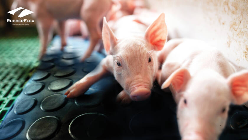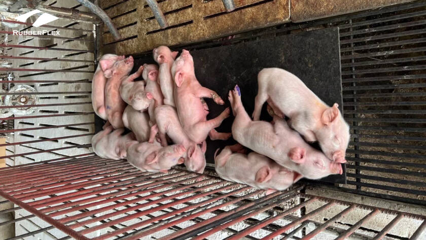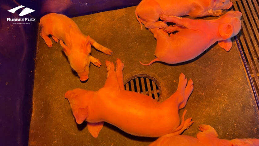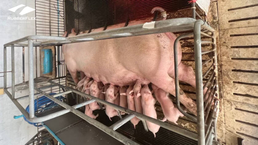 ทว่าเมื่อเปลี่ยนมาใช้แผ่นยาง RubberFlex ปัญหานี้จะถูกแก้ไขด้วยคุณสมบัติในการ “กักเก็บและกระจายความร้อน” (Thermal Distribution) ที่ยอดเยี่ยม วัสดุยางพาราคอมพาวด์ (Rubber Compound) สูตรพิเศษ “สามารถดูดซับความร้อนจากหลอดไฟกกและกระจายออกไปทั่วพื้นผิวสัมผัสอย่างสม่ำเสมอ” ทำให้พื้นที่บนแผ่นยางมีความอุ่นสบายเท่ากันทั่วทั้งแผ่น เมื่อลูกหมูสัมผัสได้ถึงความอบอุ่นที่พอเหมาะจากพื้นยาง ลูกหมูจะเริ่มกระจายตัวนอนอย่างอิสระ ไม่จำเป็นต้องไปนอนเบียดเสียดใต้ท้องแม่หมูอีกต่อไป การที่ลูกหมูนอนเป็นระเบียบและเว้นระยะห่างจากตัวแม่หมูอย่างเหมาะสม จึงช่วยลดอัตราการเสียชีวิตจากการถูกทับได้อย่างมีนัยสำคัญ ถือเป็นการยกระดับสวัสดิภาพสัตว์ที่ส่งผลต่อจำนวนลูกหมูหย่านมต่อแม่ต่อปี (Pig Weaned per Sow per Year หรือ PSY) โดยตรง
